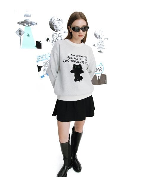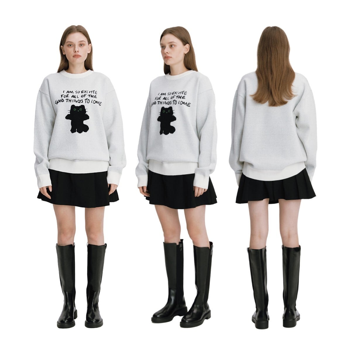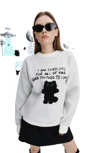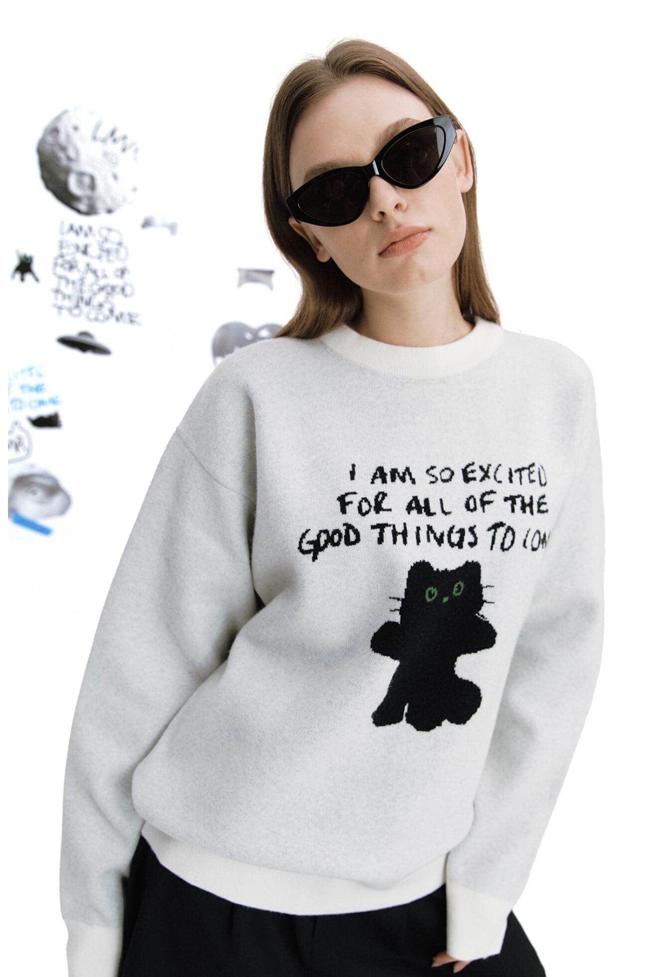 11/13までセール!★ZEROBASEONE ジウン 着用!!【LMR】CAT CHARACTER LETTERING JACQUARD KNIT PULLOVER