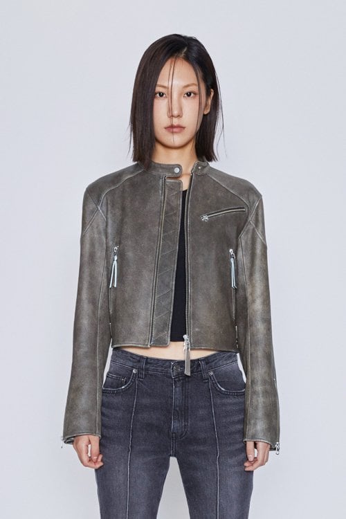 [AFTERHOURS] BIKER LEATHER JACKET (DARK BROWN)