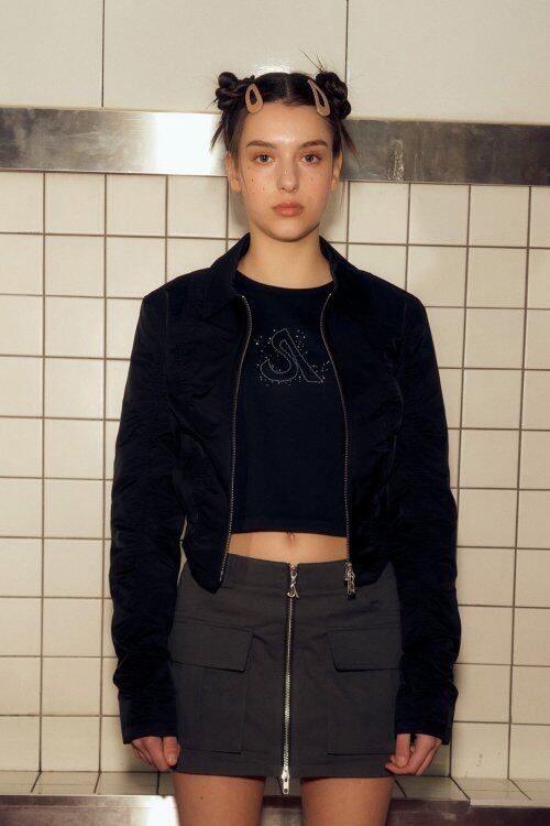 [AFTERHOURS] RUCHED SHORT JACKET (BLACK)