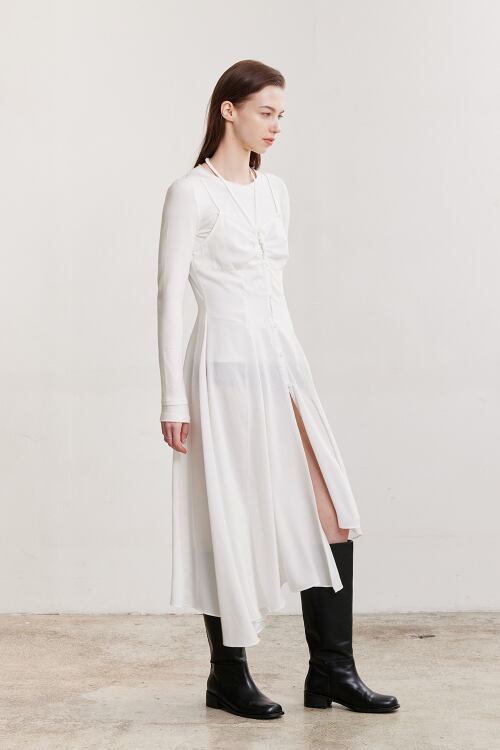 [AFTERHOURS] OPEN LAYERED FRILL DRESS (WHITE)