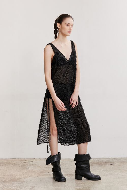 [AFTERHOURS] V-NECK GLITTER LAYERED DRESS (BLACK)