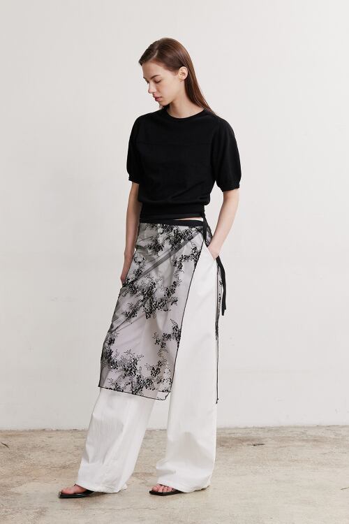 [AFTERHOURS] SEE-THROUGH LAYERED SPANGLE SKIRT (BLACK)