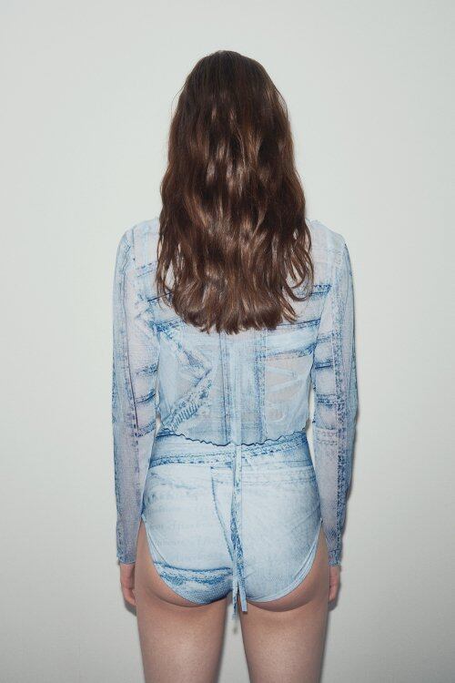 [AFTERHOURS] DENIM PRINTED SEE-THROUGH CARDIGAN (BLUE)