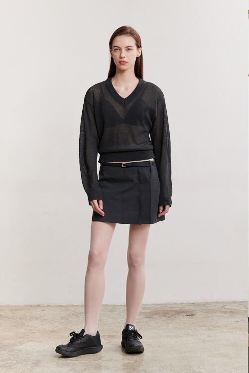[AFTERHOURS] SEE-THROUGH V-NECK KNIT TOP (CHARCOAL)