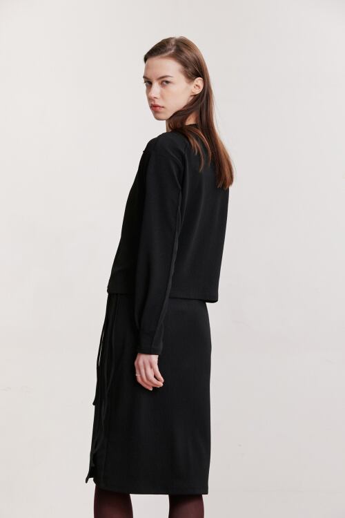 [AFTERHOURS] SHIRRING BUTTON CARDIGAN (BLACK)