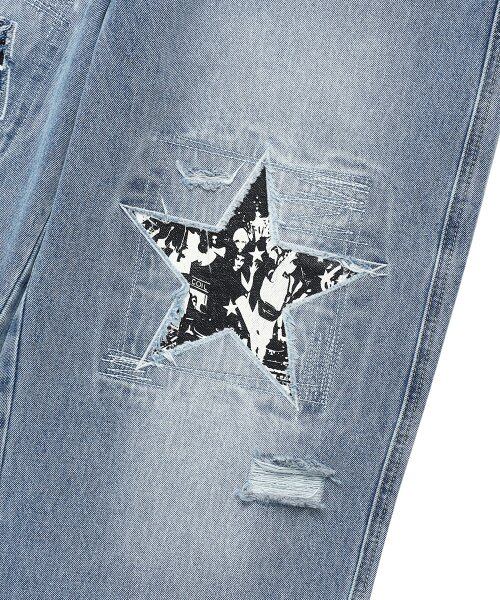 [CAVISH] DAMAGED STAR DENIM PANTS BLUE(CV2ESUD110A)