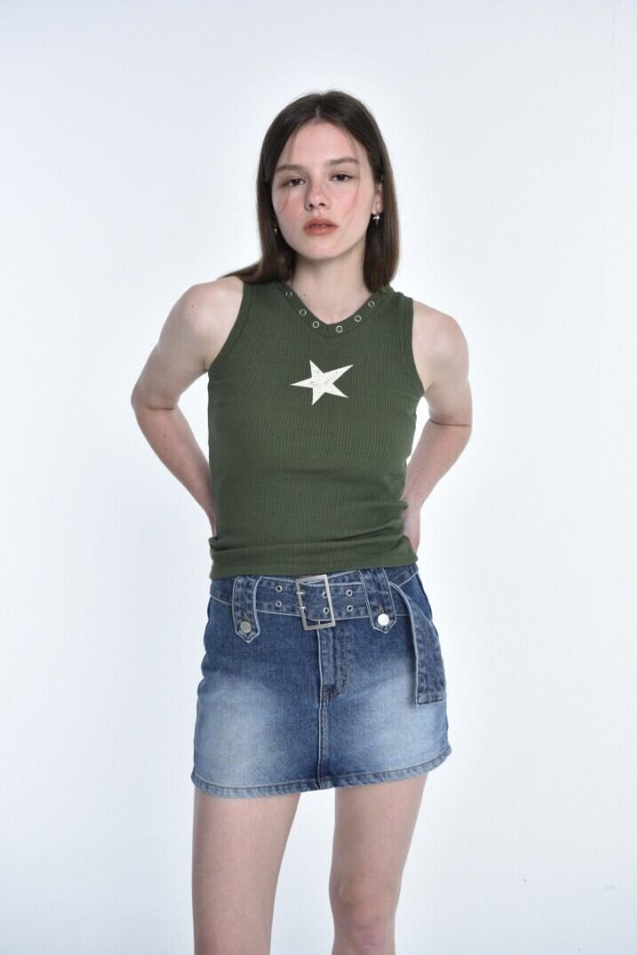- 前面のビンテージ捺染とアイレットでポイント