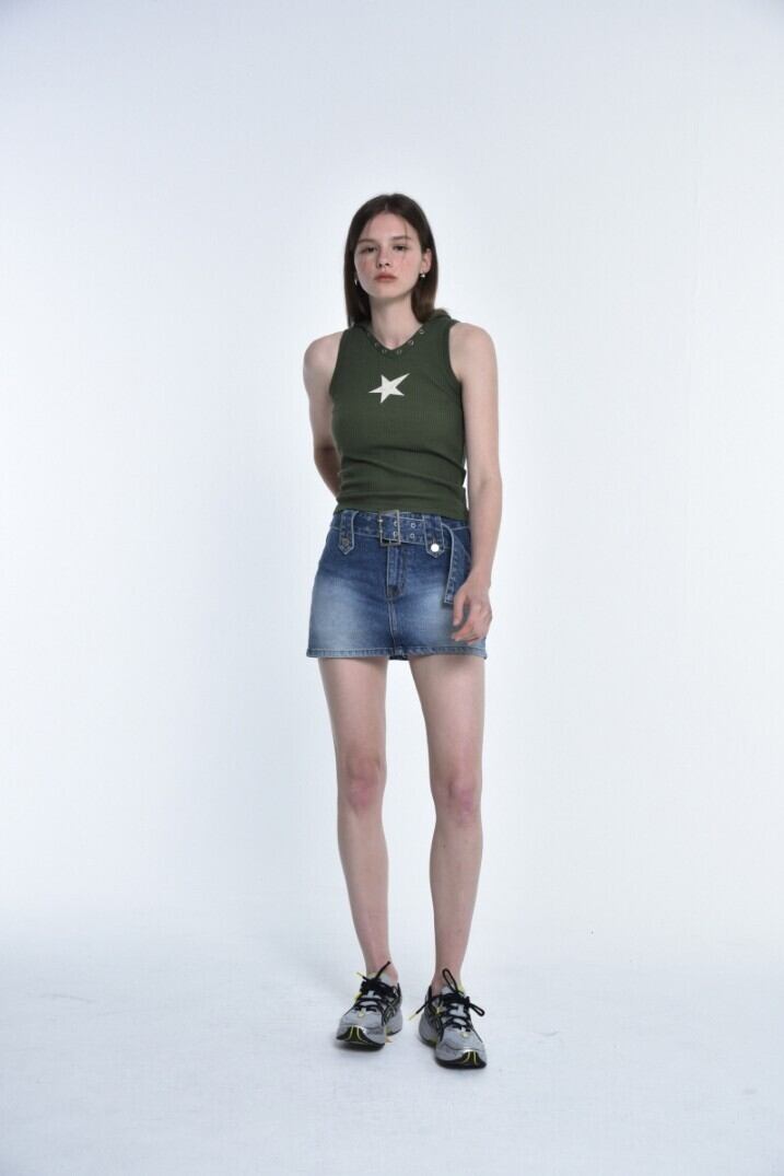 リブ生地のスリムフィットフード 袖なし
