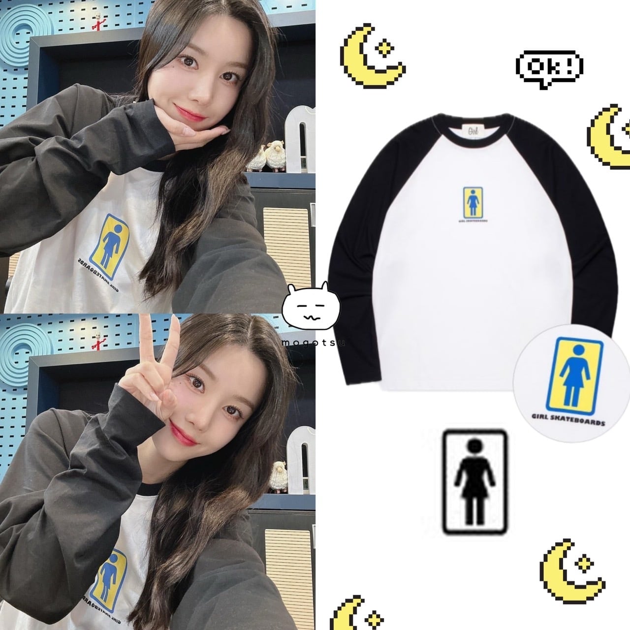 ★IZ*ONE クォンウンビ 着用!!【GIRL SKATEBOARDS】BOXED OG RAGLAN LONG SLEEVE black