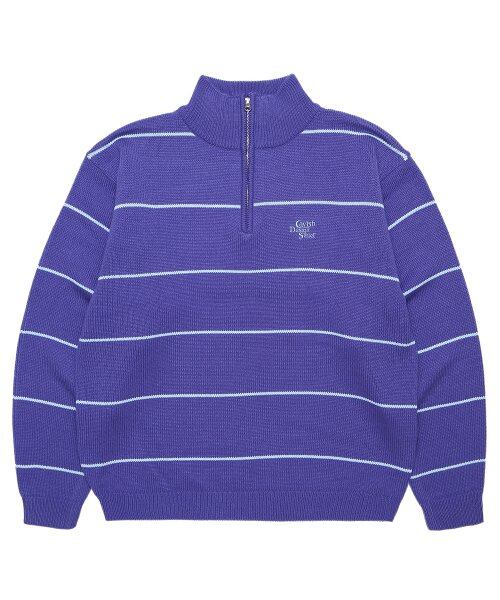 [CAVISH] STRIPED HALF ZIP KNIT SWEATER PURPLE(CV2CFUK681A)
