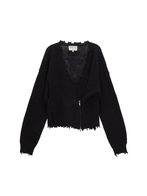 [MATIN KIM] PINCHED TWO WAY KNIT ZIP CARDIGAN IN BLACK