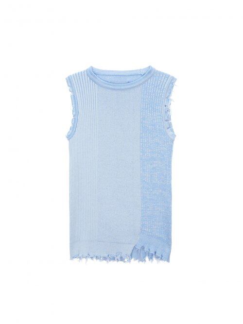 [MATIN KIM] DAMAGE SLEEVELESS KNIT TOP IN SKY