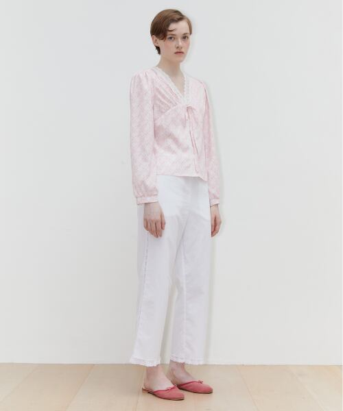 [SINOON] V-NECK LACE BLOUSE (PINK)