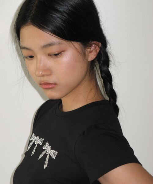 [SINOON] RIBBON T-SHIRTS (BLACK)