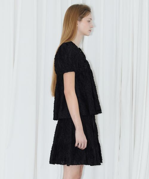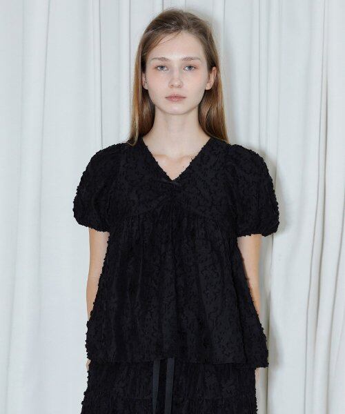 [SINOON] JACQUARD RIBBON BLOUSE (BLACK)