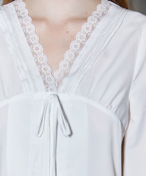 [SINOON] V-NECK LACE BLOUSE (WHITE)