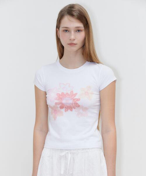 [SINOON] FLOWER CAP SLEEVE T-SHIRT (PINK)