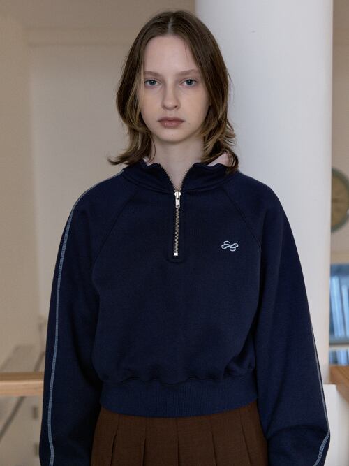 [SINOON] RAGLAN HALF ZIP-UP SWEATSHIRT (NAVY)