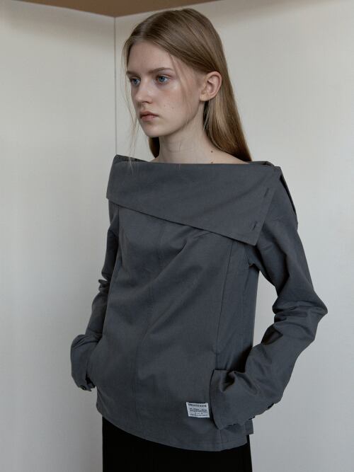 [SINOON] OFF-SHOULDER BOTTONED BLOUSE (CHARCOAL)