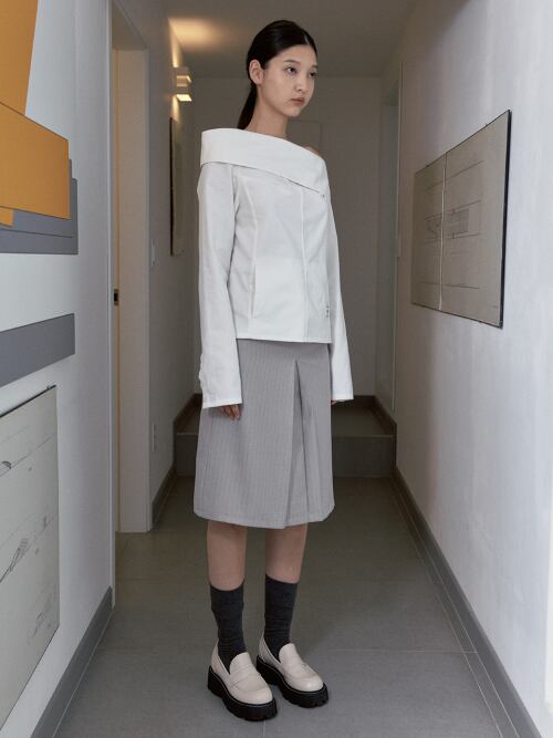 [SINOON] OFF-SHOULDER BOTTONED BLOUSE (IVORY)