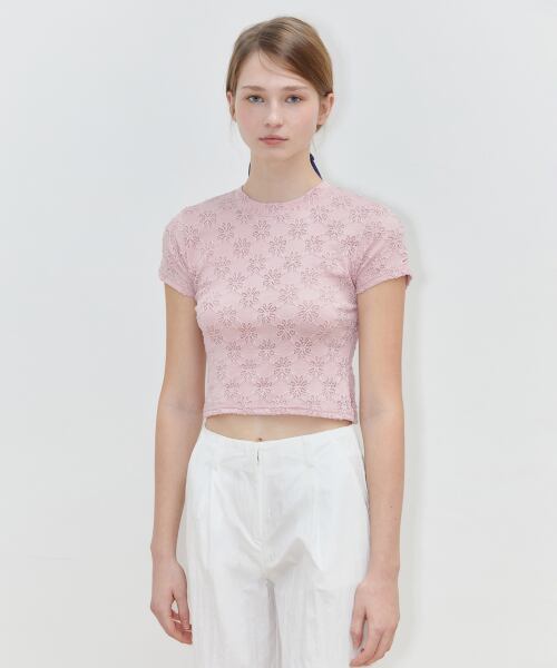 [SINOON] FLOWER JACQUARD T-SHIRT (PINK)