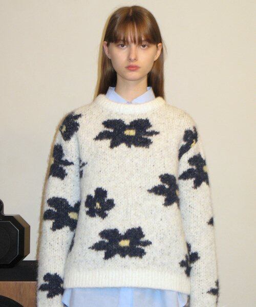 [SINOON] FLOWER PULLOVER KNIT (WHITE)