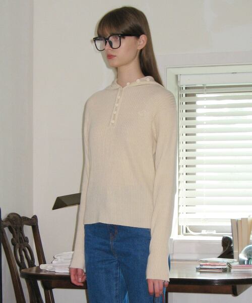 [SINOON] HOODED BUTTON KNIT TOP (CREAM)