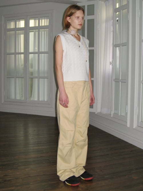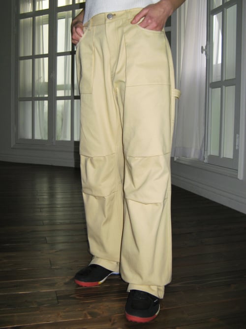 [SINOON] OUT-POCKET CARPENTER PANTS (CREAM YELLOW)