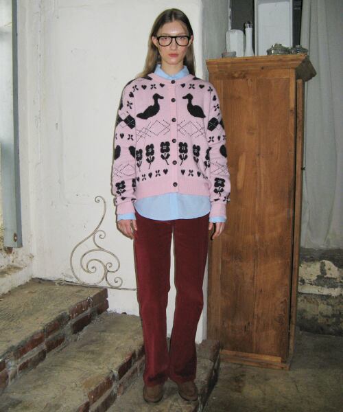[SINOON] MIXED PATTERN KNIT CARDIGAN (PINK)