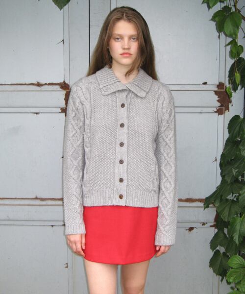 [SINOON] CABLE COLLAR CARDIGAN (GREY)