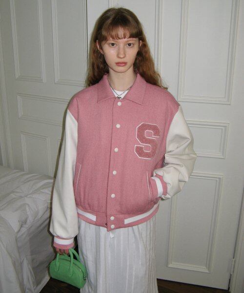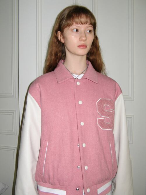 [SINOON] CLASSIC LOGO AWARD JACKET (PALE PINK)