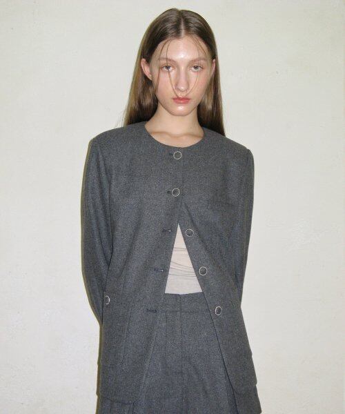 [SINOON] MELTON TWEED JACKET (MELANGE GREY)