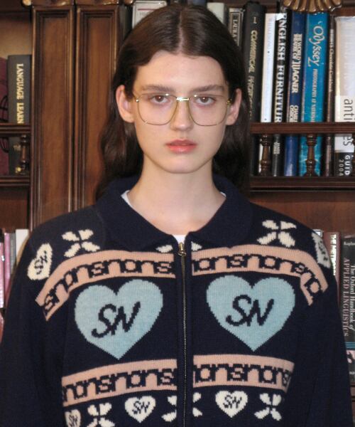 [SINOON] HEART LOGO KNIT ZIP-UP (NAVY)