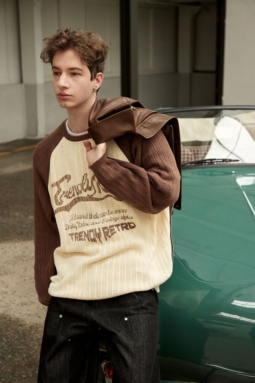 - チェーン方式の組み合わせとナグランディテールが加わったニット