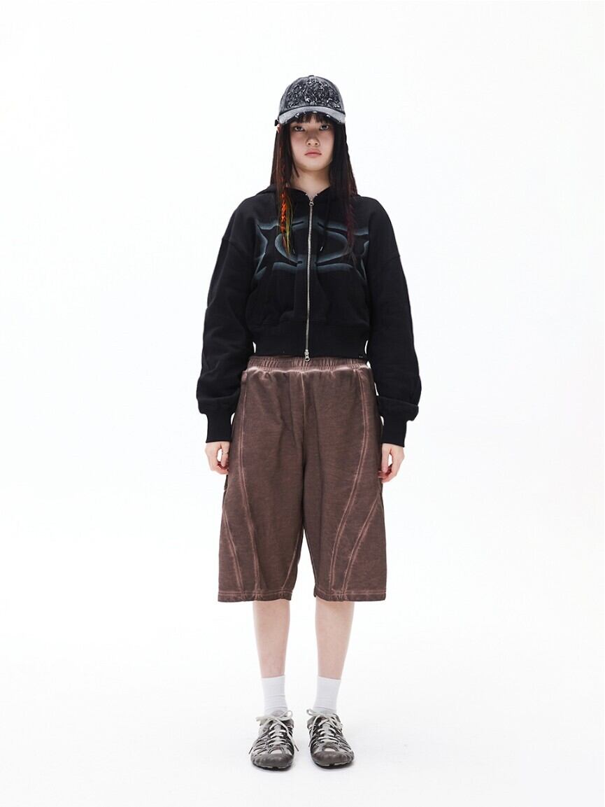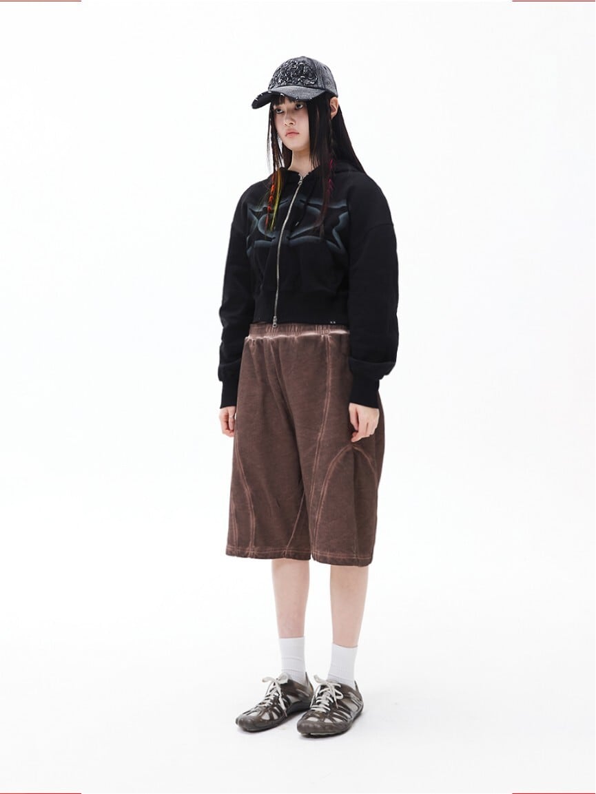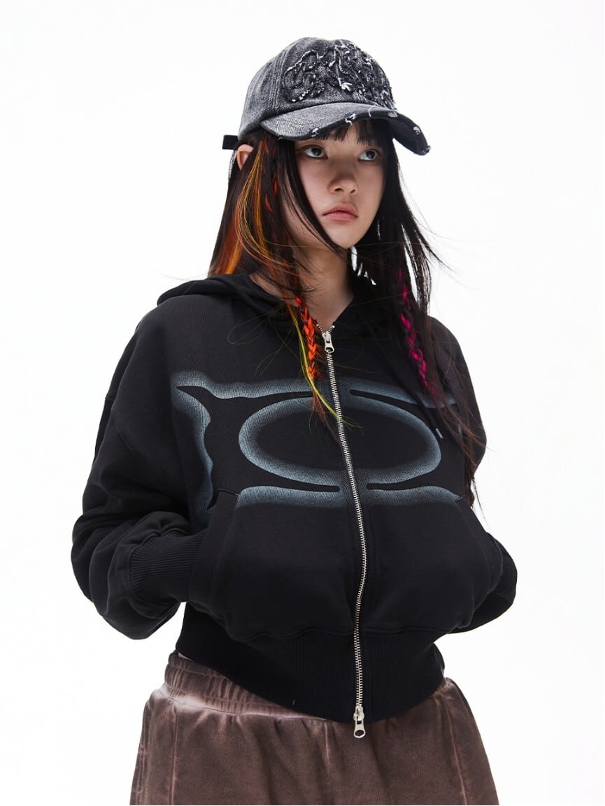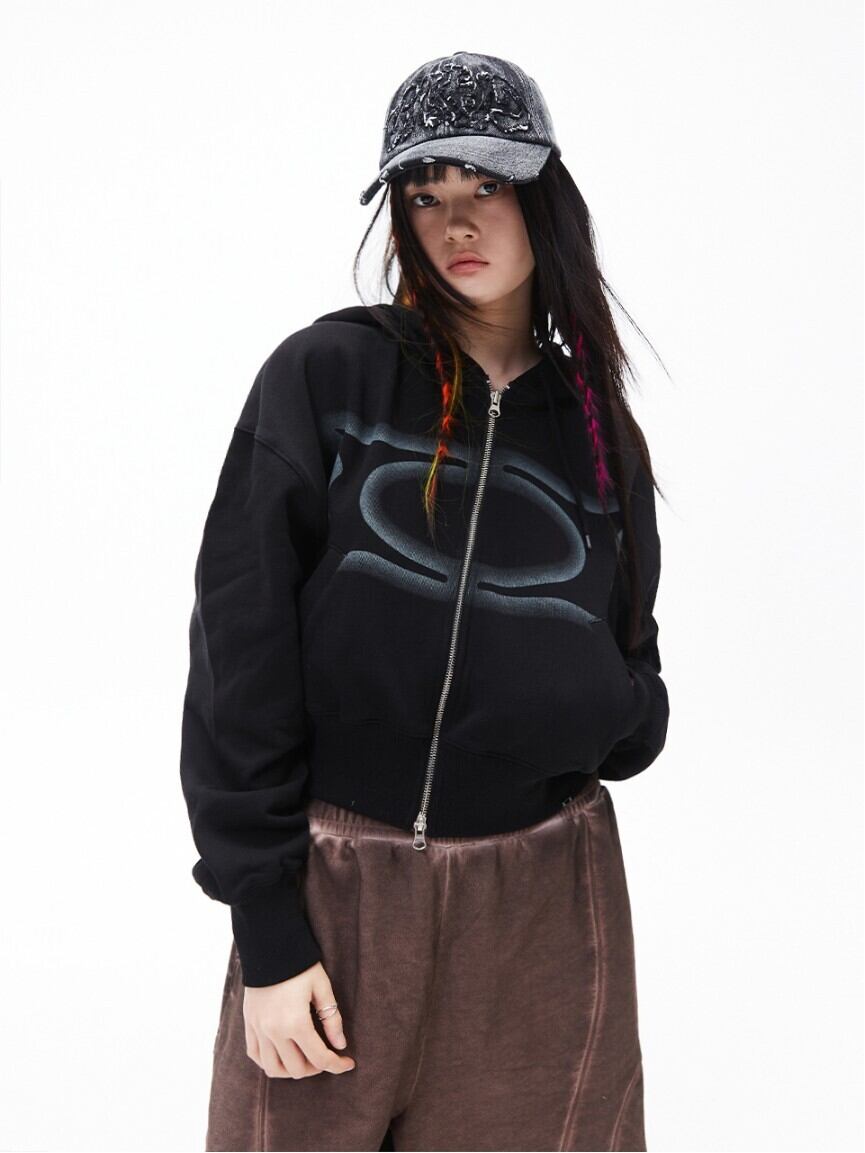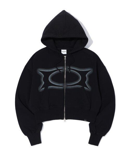★(G)I-DLE ソヨン 着用!!【CRITIC】CROP WORMHOLE LOGO HOODIE ZIP-UP BLACK