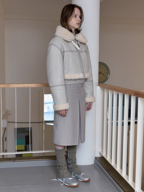 [SINOON] SEMI LOW RISE STRIPE MIDI SKIRT (BEIGE)