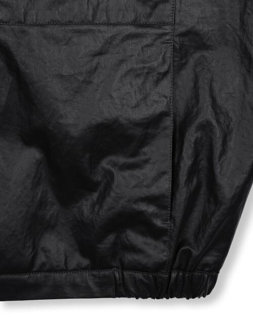ほのかなコーティング感が魅力的なアイテムであり、裾のバンディング処理により