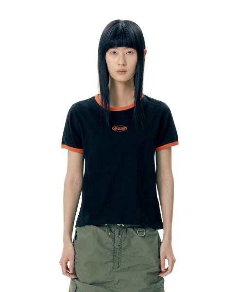 [AMES-WORLDWIDE] SYMBOL LOGO EMBROIDERED CROP TEE O BLACK