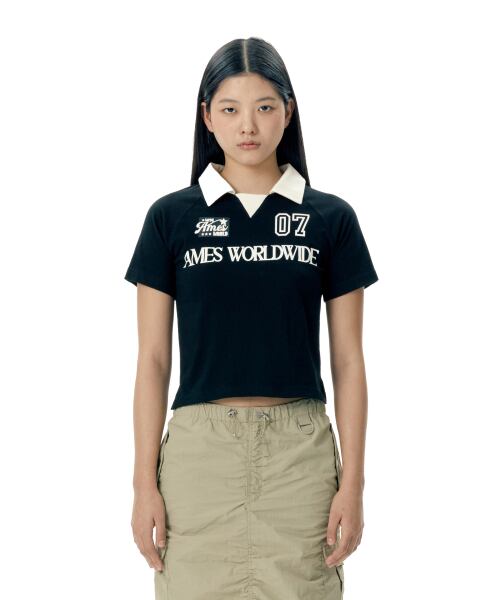 [AMES-WORLDWIDE] SPORTY COLLAR TEE BLACK