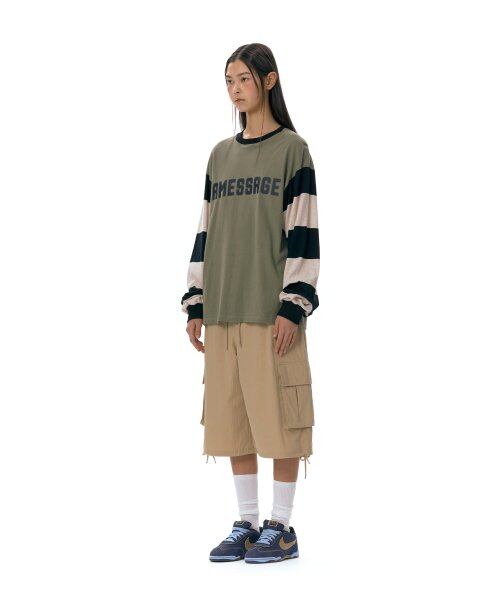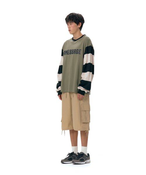 [AMES-WORLDWIDE] STRIPED SLEEVE LS TEE KHAKI