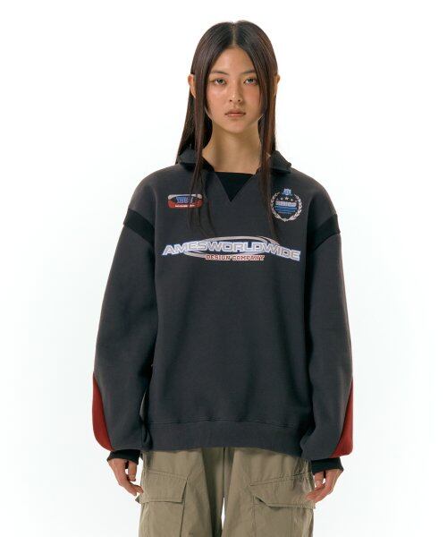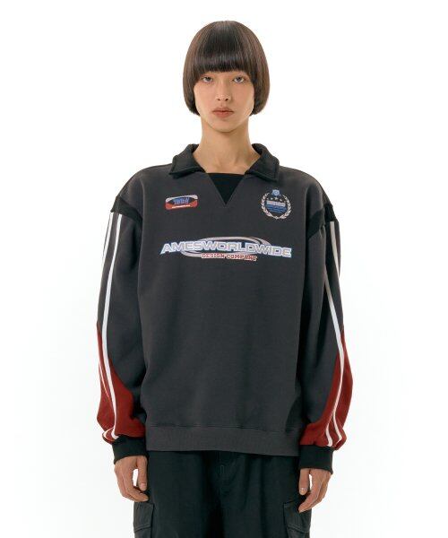 [AMES-WORLDWIDE] COLLAR TRACK LINE SWEATSHIRT CHARCOAL