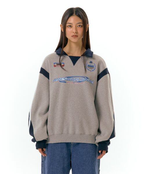 [AMES-WORLDWIDE] COLLAR TRACK LINE SWEATSHIRT GREY
