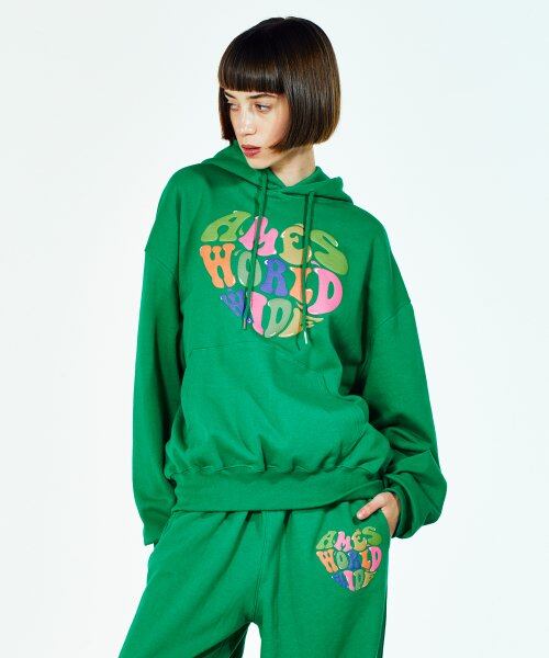 [AMES-WORLDWIDE] RAINBOW HEART HOODIE GREEN