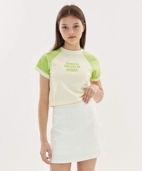 [AMES-WORLDWIDE] COLORED RINGER CROP T-SHIRTS _LG(21HSTP06)