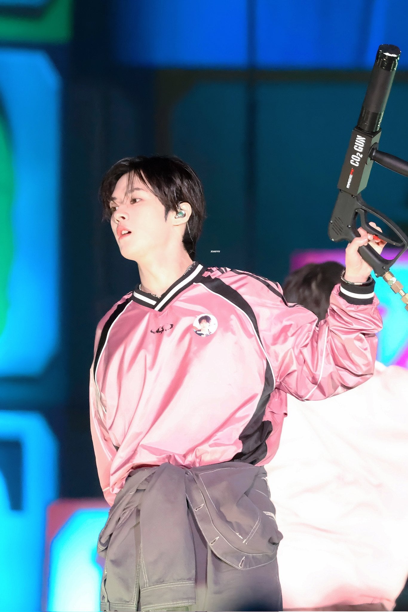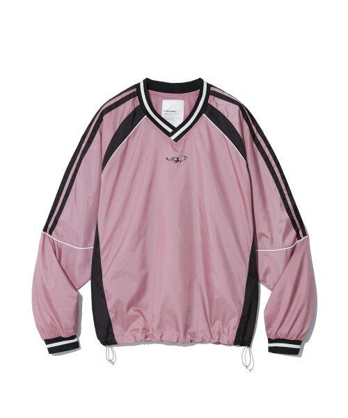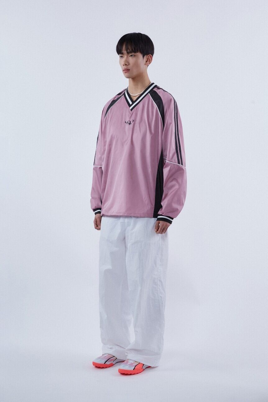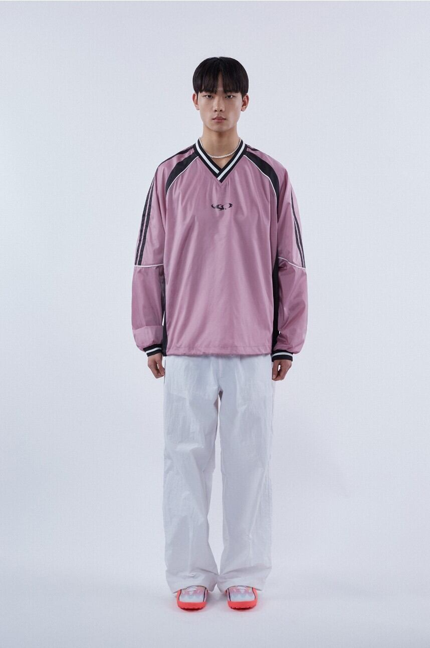 ★Stray Kids リノ 着用!!【CODEGRAPHY】CGP ARCロゴ ナイロン配色 Vネック マンツーマンTシャツ_インディピンク