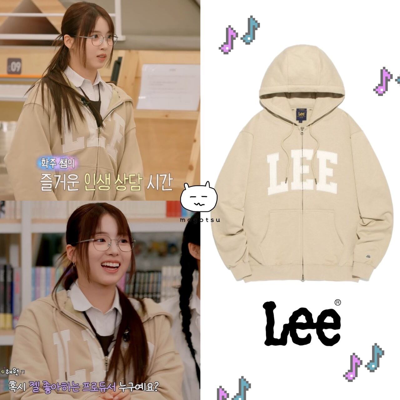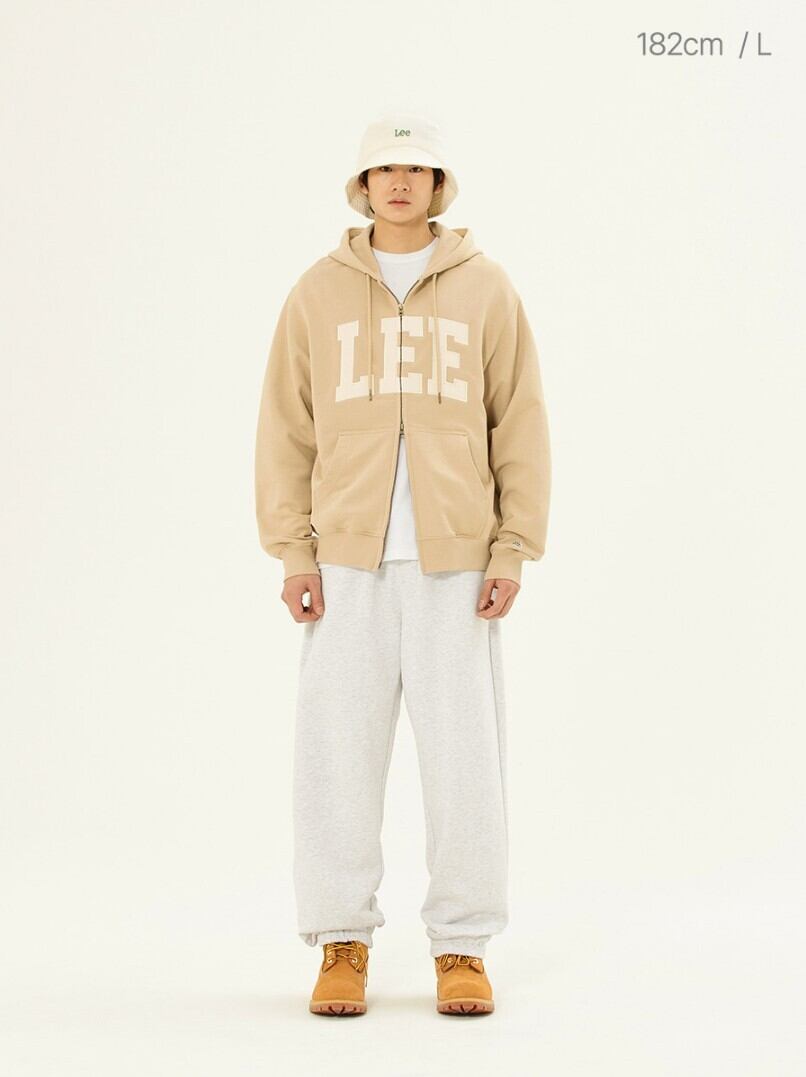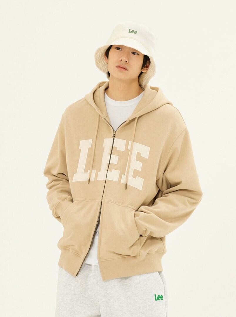★NMIXX ジウ 着用!!【LEE】Denim Applique Logo Hooded Zip-Up Beige