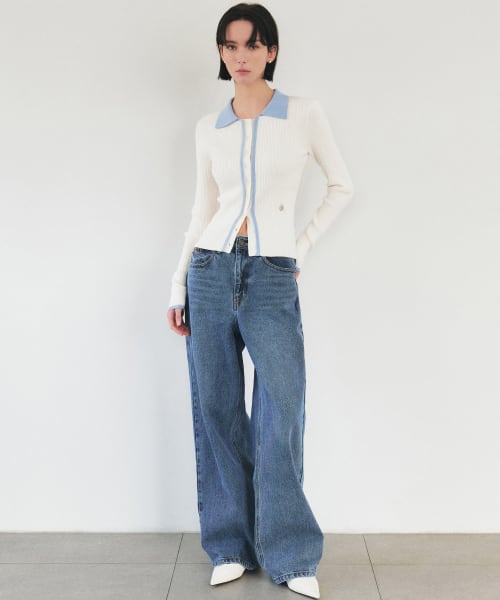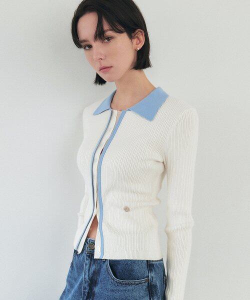 ★ILLIT ミンジュ 着用!!【CITY BREEZE】COLLAR BUTTON UP RIBBED CARDIGAN
