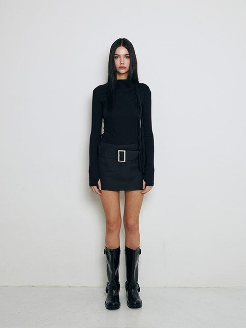 [NOT YOUR ROSE] Drape scarf tshirt (Black)