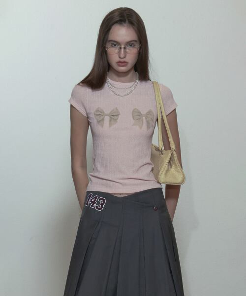 [SCULPTOR] Bow Bow Baby Tee Peach Fuzz