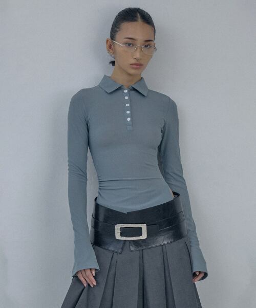 [SCULPTOR] Button Down Bell Sleeve Tee Blue Gray